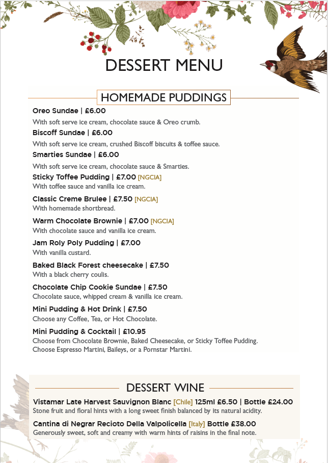 From Sundaes to Baked Black Forest Cheesecake, we have something for everyone to finish a meal in style.